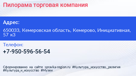 Пилорама, торговая компания по адресу 650033, Кемеровская область, Кемерово, Инициативная, 57 к3 в дальнейшем Организация, размещена в следующих категориях: