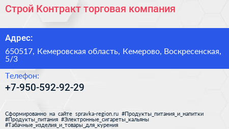 Строй Контракт, торговая компания по адресу 650517, Кемеровская область, Кемерово, Воскресенская, 5/3 в дальнейшем Организация, размещена в следующих категориях: