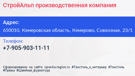 СтройАльп, производственная компания по адресу 650010, Кемеровская область, Кемерово, Совхозная, 23/1 в дальнейшем Организация, размещена в следующих категориях: