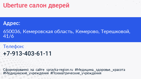 Uberture, салон дверей по адресу 650036, Кемеровская область, Кемерово, Терешковой, 41/6 в дальнейшем Организация, размещена в следующих категориях: