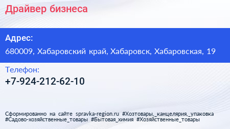 Драйвер бизнеса по адресу 680009, Хабаровский край, Хабаровск, Хабаровская, 19 в дальнейшем Организация, размещена в следующих категориях: