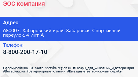 ЭОС, компания по адресу 680007, Хабаровский край, Хабаровск, Спортивный переулок, 4 лит А в дальнейшем Организация, размещена в следующих категориях: