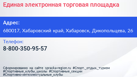 Единая электронная торговая площадка по адресу 680017, Хабаровский край, Хабаровск, Дикопольцева, 26 в дальнейшем Организация, размещена в следующих категориях: