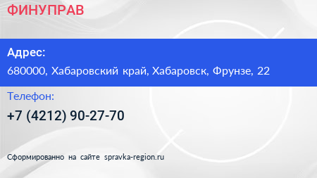 ФИНУПРАВ по адресу 680000, Хабаровский край, Хабаровск, Фрунзе, 22 в дальнейшем Организация, размещена в следующих категориях:
