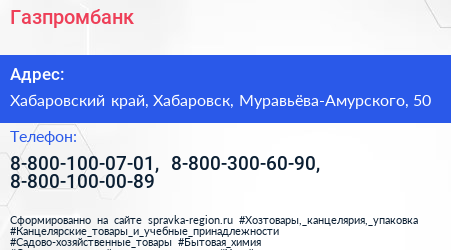 Газпромбанк по адресу Хабаровский край, Хабаровск, Муравьёва-Амурского, 50 в дальнейшем Организация, размещена в следующих категориях: