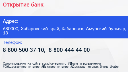 Открытие, банк по адресу 680000, Хабаровский край, Хабаровск, Амурский бульвар, 18 в дальнейшем Организация, размещена в следующих категориях:
