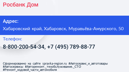 Росбанк Дом по адресу Хабаровский край, Хабаровск, Муравьёва-Амурского, 50 в дальнейшем Организация, размещена в следующих категориях: