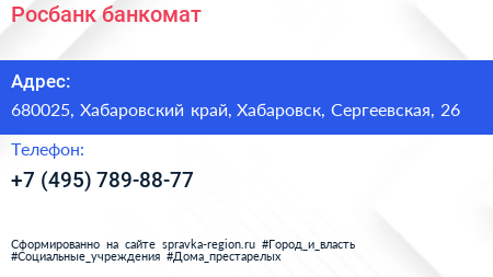 Росбанк, банкомат по адресу 680025, Хабаровский край, Хабаровск, Сергеевская, 26 в дальнейшем Организация, размещена в следующих категориях: