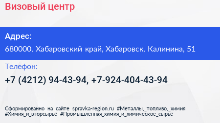 Визовый центр по адресу 680000, Хабаровский край, Хабаровск, Калинина, 51 в дальнейшем Организация, размещена в следующих категориях: