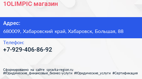 1OLIMPIC, магазин по адресу 680009, Хабаровский край, Хабаровск, Большая, 88 в дальнейшем Организация, размещена в следующих категориях: