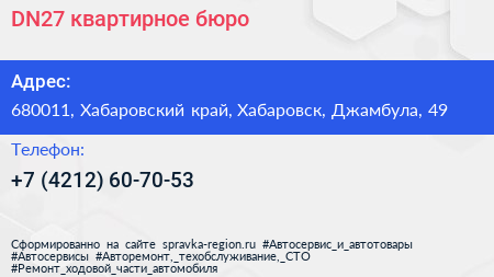 DN27, квартирное бюро по адресу 680011, Хабаровский край, Хабаровск, Джамбула, 49 в дальнейшем Организация, размещена в следующих категориях: