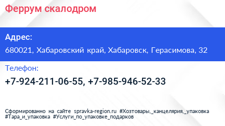 Феррум, скалодром по адресу 680021, Хабаровский край, Хабаровск, Герасимова, 32 в дальнейшем Организация, размещена в следующих категориях: