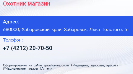 Охотник, магазин по адресу 680000, Хабаровский край, Хабаровск, Льва Толстого, 5 в дальнейшем Организация, размещена в следующих категориях: