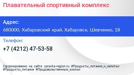 Плавательный спортивный комплекс по адресу 680000, Хабаровский край, Хабаровск, Шевченко, 18 в дальнейшем Организация, размещена в следующих категориях: