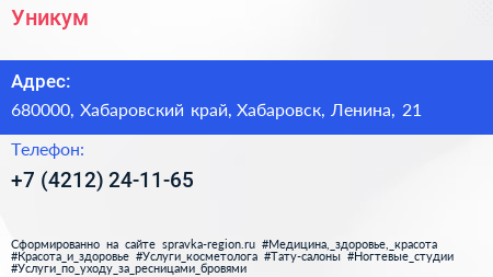 Уникум по адресу 680000, Хабаровский край, Хабаровск, Ленина, 21 в дальнейшем Организация, размещена в следующих категориях: