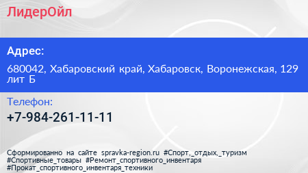 ЛидерОйл по адресу 680042, Хабаровский край, Хабаровск, Воронежская, 129 лит Б в дальнейшем Организация, размещена в следующих категориях: