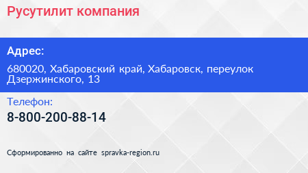 Русутилит, компания по адресу 680020, Хабаровский край, Хабаровск, переулок Дзержинского, 13 в дальнейшем Организация, размещена в следующих категориях: