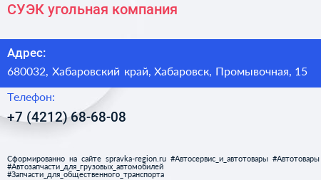 СУЭК, угольная компания по адресу 680032, Хабаровский край, Хабаровск, Промывочная, 15 в дальнейшем Организация, размещена в следующих категориях: