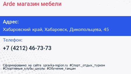 Arde, магазин мебели по адресу Хабаровский край, Хабаровск, Дикопольцева, 45 в дальнейшем Организация, размещена в следующих категориях: