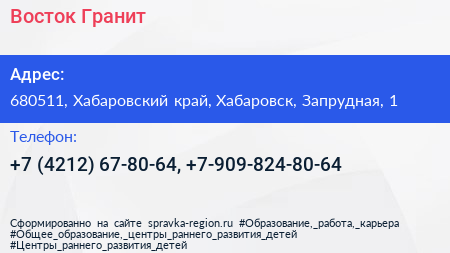 Восток-Гранит по адресу 680511, Хабаровский край, Хабаровск, Запрудная, 1 в дальнейшем Организация, размещена в следующих категориях: