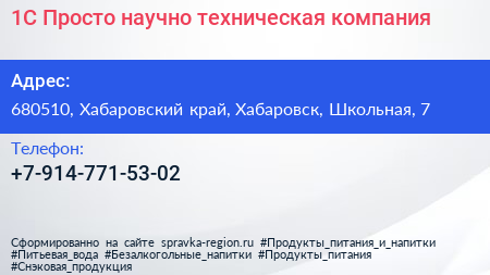 1С Просто, научно-техническая компания по адресу 680510, Хабаровский край, Хабаровск, Школьная, 7 в дальнейшем Организация, размещена в следующих категориях: