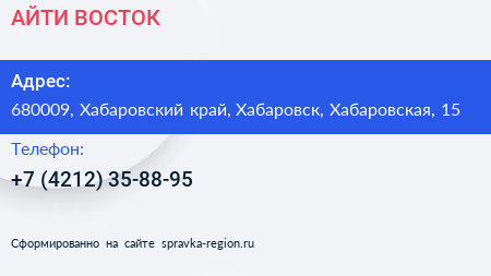АЙТИ-ВОСТОК по адресу 680009, Хабаровский край, Хабаровск, Хабаровская, 15 в дальнейшем Организация, размещена в следующих категориях: