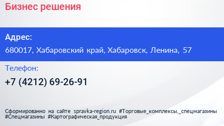 Бизнес решения по адресу 680017, Хабаровский край, Хабаровск, Ленина, 57 в дальнейшем Организация, размещена в следующих категориях: