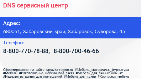 DNS, сервисный центр по адресу 680051, Хабаровский край, Хабаровск, Суворова, 45 в дальнейшем Организация, размещена в следующих категориях: