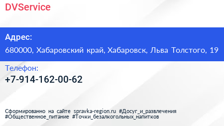 DVService по адресу 680000, Хабаровский край, Хабаровск, Льва Толстого, 19 в дальнейшем Организация, размещена в следующих категориях: