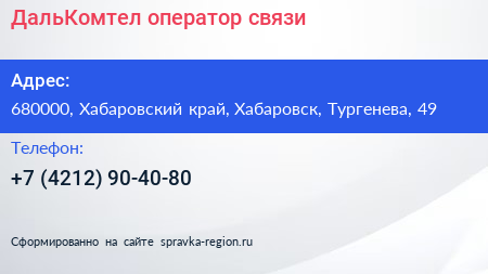 ДальКомтел, оператор связи по адресу 680000, Хабаровский край, Хабаровск, Тургенева, 49 в дальнейшем Организация, размещена в следующих категориях: