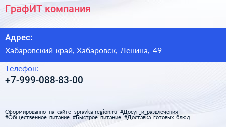 ГрафИТ, компания по адресу Хабаровский край, Хабаровск, Ленина, 49 в дальнейшем Организация, размещена в следующих категориях: