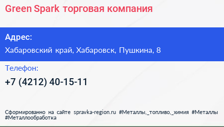Green Spark, торговая компания по адресу Хабаровский край, Хабаровск, Пушкина, 8 в дальнейшем Организация, размещена в следующих категориях: