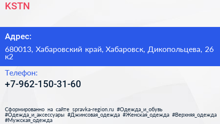 KSTN по адресу 680013, Хабаровский край, Хабаровск, Дикопольцева, 26 к2 в дальнейшем Организация, размещена в следующих категориях: