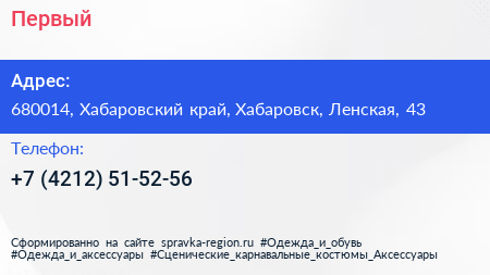 Первый по адресу 680014, Хабаровский край, Хабаровск, Ленская, 43 в дальнейшем Организация, размещена в следующих категориях: