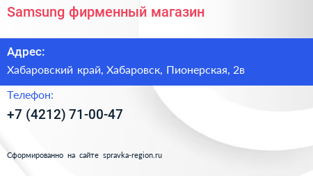 Samsung, фирменный магазин по адресу Хабаровский край, Хабаровск, Пионерская, 2в в дальнейшем Организация, размещена в следующих категориях:
