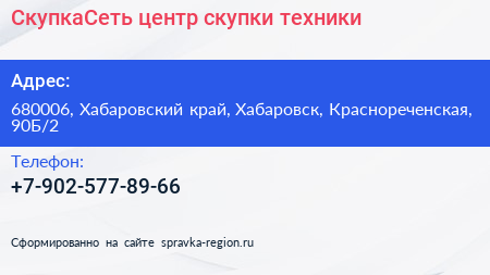 СкупкаСеть, центр скупки техники по адресу 680006, Хабаровский край, Хабаровск, Краснореченская, 90Б/2 в дальнейшем Организация, размещена в следующих категориях: