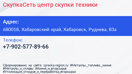 СкупкаСеть, центр скупки техники по адресу 680018, Хабаровский край, Хабаровск, Руднева, 83а в дальнейшем Организация, размещена в следующих категориях: