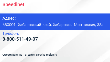 Speedinet по адресу 680001, Хабаровский край, Хабаровск, Монтажная, 38а в дальнейшем Организация, размещена в следующих категориях: