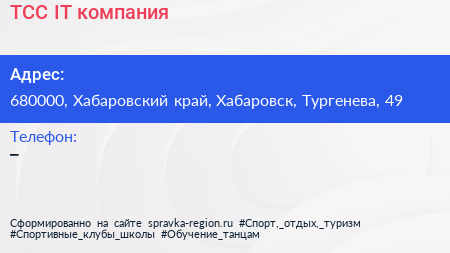 ТСС, IT-компания по адресу 680000, Хабаровский край, Хабаровск, Тургенева, 49 в дальнейшем Организация, размещена в следующих категориях: