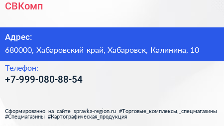 СВКомп по адресу 680000, Хабаровский край, Хабаровск, Калинина, 10 в дальнейшем Организация, размещена в следующих категориях:
