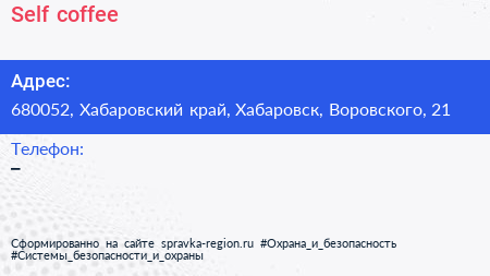 Self.coffee по адресу 680052, Хабаровский край, Хабаровск, Воровского, 21 в дальнейшем Организация, размещена в следующих категориях: