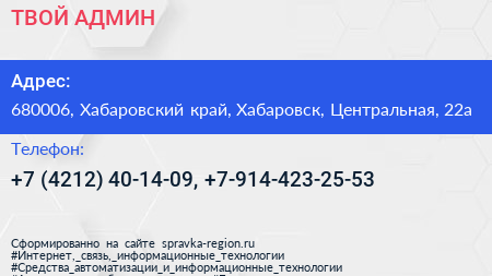 ТВОЙ АДМИН по адресу 680006, Хабаровский край, Хабаровск, Центральная, 22а в дальнейшем Организация, размещена в следующих категориях: