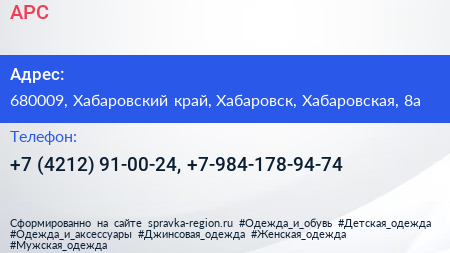 АРС по адресу 680009, Хабаровский край, Хабаровск, Хабаровская, 8а в дальнейшем Организация, размещена в следующих категориях: