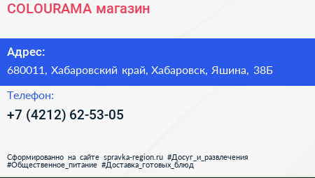 COLOURAMA, магазин по адресу 680011, Хабаровский край, Хабаровск, Яшина, 38Б в дальнейшем Организация, размещена в следующих категориях: