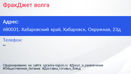 ФракДжет-волга по адресу 680031, Хабаровский край, Хабаровск, Окружная, 23д в дальнейшем Организация, размещена в следующих категориях: