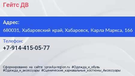 Гейтс-ДВ по адресу 680031, Хабаровский край, Хабаровск, Карла Маркса, 166 в дальнейшем Организация, размещена в следующих категориях: