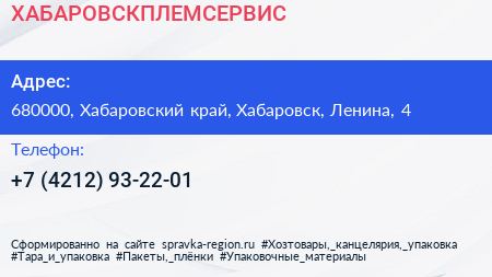 ХАБАРОВСКПЛЕМСЕРВИС по адресу 680000, Хабаровский край, Хабаровск, Ленина, 4 в дальнейшем Организация, размещена в следующих категориях: