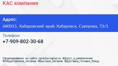 КАС, компания по адресу 680015, Хабаровский край, Хабаровск, Суворова, 73/1 в дальнейшем Организация, размещена в следующих категориях: