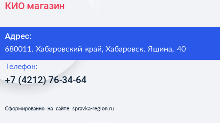КИО, магазин по адресу 680011, Хабаровский край, Хабаровск, Яшина, 40 в дальнейшем Организация, размещена в следующих категориях: