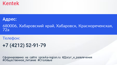 Kentek по адресу 680006, Хабаровский край, Хабаровск, Краснореченская, 72а в дальнейшем Организация, размещена в следующих категориях: